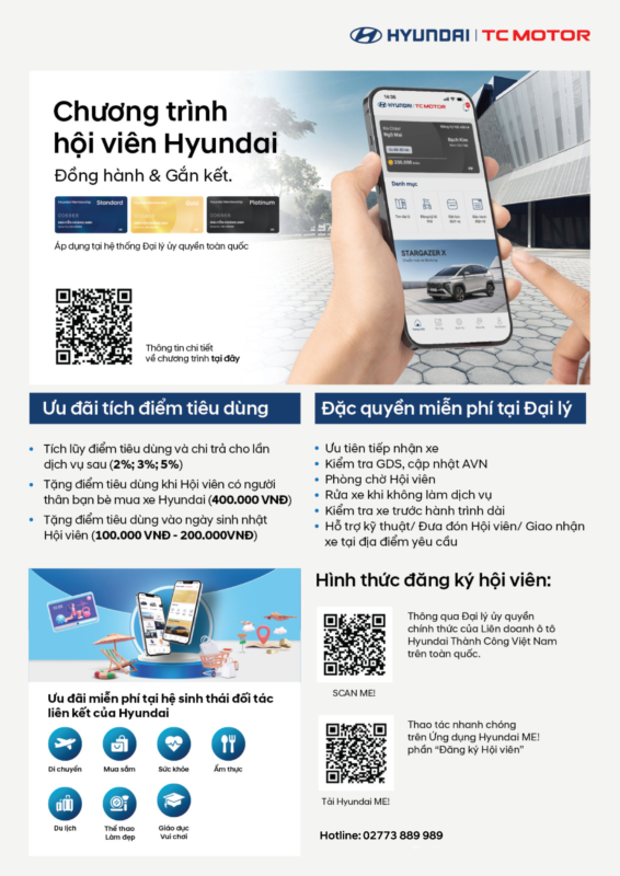 ✨Hội viên Hyundai là Chương trình khách hàng thân thiết được phối hợp thực hiện bởi Công ty Cổ phần liên doanh ô tô Hyundai Thành Công Việt Nam và hệ thống Đại lý ủy quyền nhằm mang đến những trải nghiệm và ưu đãi miễn phí đặc quyền cho khách hàng sở hữu xe Hyundai, tại đại lý và các đối tác liên kết thuộc nhiều lĩnh vực khác nhau. 👉Vui lòng tải ngay ứng dụng Hyundai ME! để đăng ký, theo dõi thông tin Hội viên và tận hưởng những tiện ích dành riêng cho Quý Hội viên. - IOS: https://apps.apple.com/vn/app/hyundai-me/id1449448399 - Android: https://play.google.com/store/apps/details... ------------------------- Hyundai Thành Công Đồng Tháp - Đại lý ủy quyền của Hyundai Thành Công Việt Nam HYUNDAI ĐỒNG THÁP ➤ Hotline : 0911.881.099 ➤ Zalo: https://zalo.me/125842459035567060 ➤ Website : https:/ ➤ Showroom Sa Đéc : Số 48A, Quốc Lộ 80, Phường 2, Thành Phố Sa Đéc, Tỉnh Đồng Tháp ➤ Showroom Cao Lãnh : Số 89 Nguyễn Huệ, Phường 1, Thành Phố Cao Lãnh, Tỉnh Đồng Tháp ➤ Dịch vụ : 0911.881.081 Rất hân hạnh được phục vụ Quý Khách!
