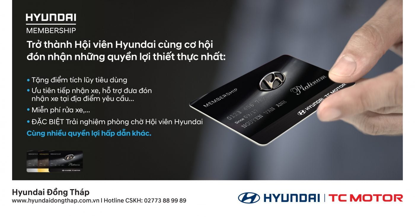- Đối tượng tham gia: Khách hàng sở hữu xe Hyundai đăng ký tham gia Chương trình Hội viên tại Đại lý Hyundai Đồng Tháp