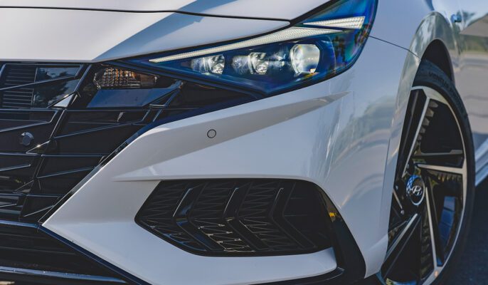 Thiết kế kiểu “Parametric Jewel Pattern” làm nổi bật chiều sâu của lưới tản nhiệt phía trước, làm cho nó giống như những viên đá quý cắt kim cương cùng đèn pha phía trước táo bạo và kéo dài kết hợp với nhau để mang lại cho Elantra vẻ thể thao.