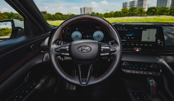Khoang lái của All New Elantra giống như buồng lái của phi công. Giúp người lái kiểm soát tốt hơn và dễ dàng hơn