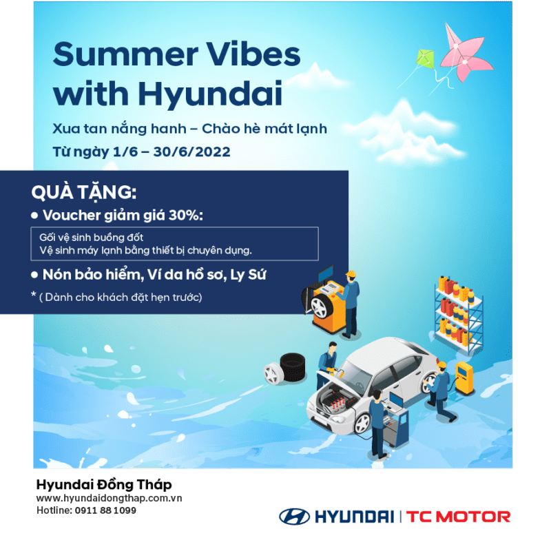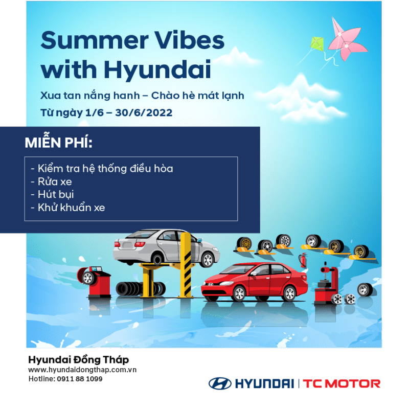 Hyundai Đồng Tháp chào đón mùa hè “cực mát lạnh” cho xế cưng với chương trình khuyến mãi dịch vụ (KMDV) siêu hot: “Xua Tan Nắng Hanh – Chào Hè Mát Lạnh”.