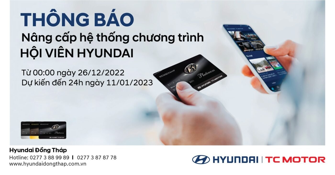 Hyundai Đồng Tháp xin trân trọng cảm ơn sự quan tâm và ủng hộ của Quý Hội viên trong suốt thời gian qua.Với mong muốn không ngừng nâng cao chất lượng và hiệu quả Chương trình Hội viên Hyundai, Hyundai Đồng Tháp xin trân trọng thông báo: Từ hôm nay dự kiến đến 24:00 ngày[ …]
