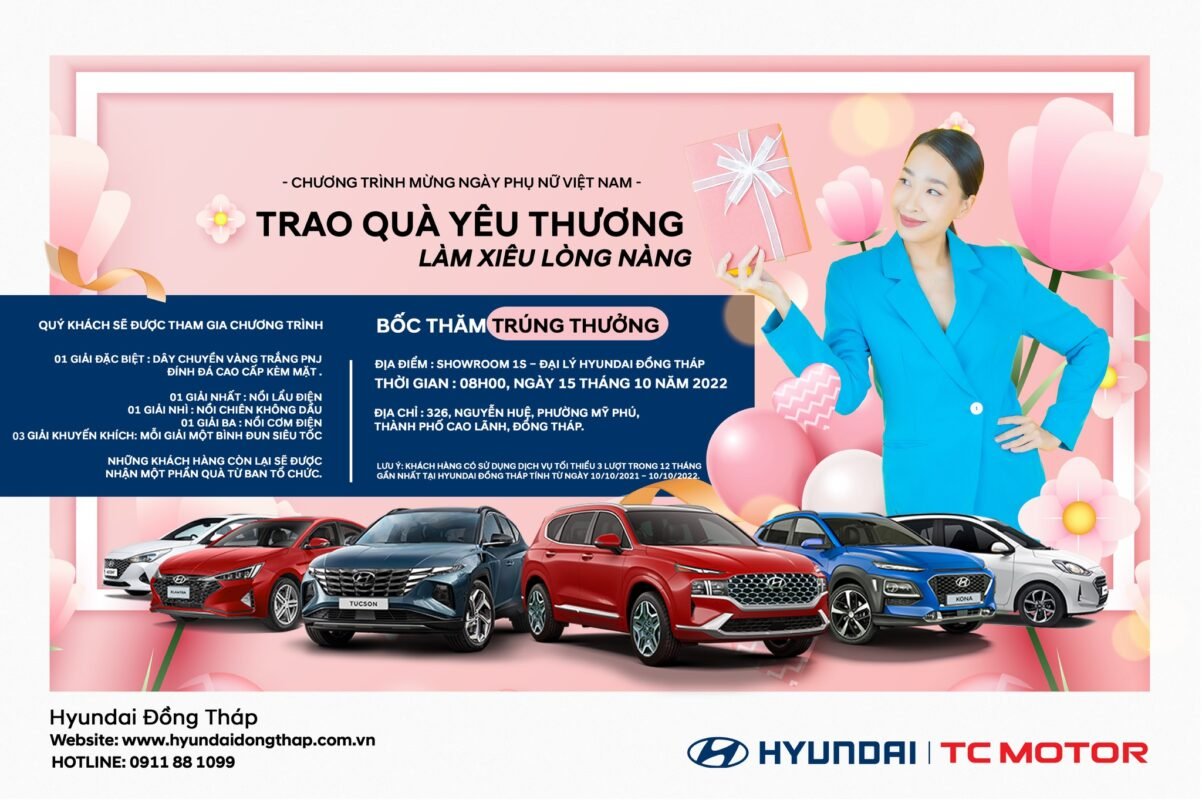 20/10 – Ai cũng có quà Trọn vẹn yêu thương ngày Phụ nữ Việt Nam Để lan tỏa tình yêu tới những người phụ nữ Việt Nam trong ngày 20/10, Hyundai Đồng Tháp tổ chức Chương trình tri ân dành cho khách hàng thân thiết đã và đang sử dụng dịch vụ tại Đại lý[ …]